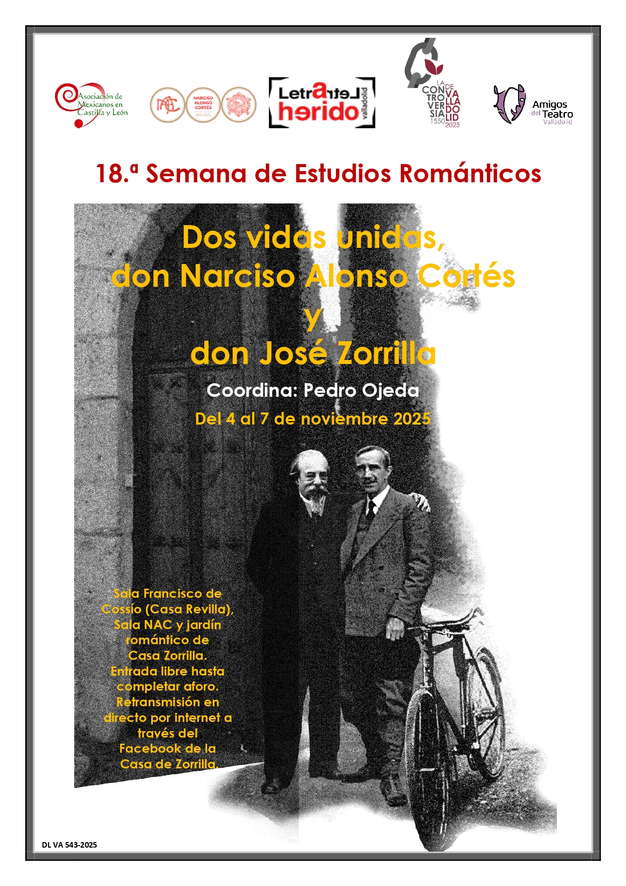 « Dos vidas unidas: don Narciso Alonso Cortés y don José Zorrilla.»Coordina: Pedro Ojeda. Apertura de la 18 Semana de Estudios Románticos. Inauguración de la “Ofrenda de muertos de Casa de Zorrilla”. Glosa de la “Ofrenda” dedicada a los defensores y las defensoras de los Derechos Humanos a lo largo de la Historia. En el […]