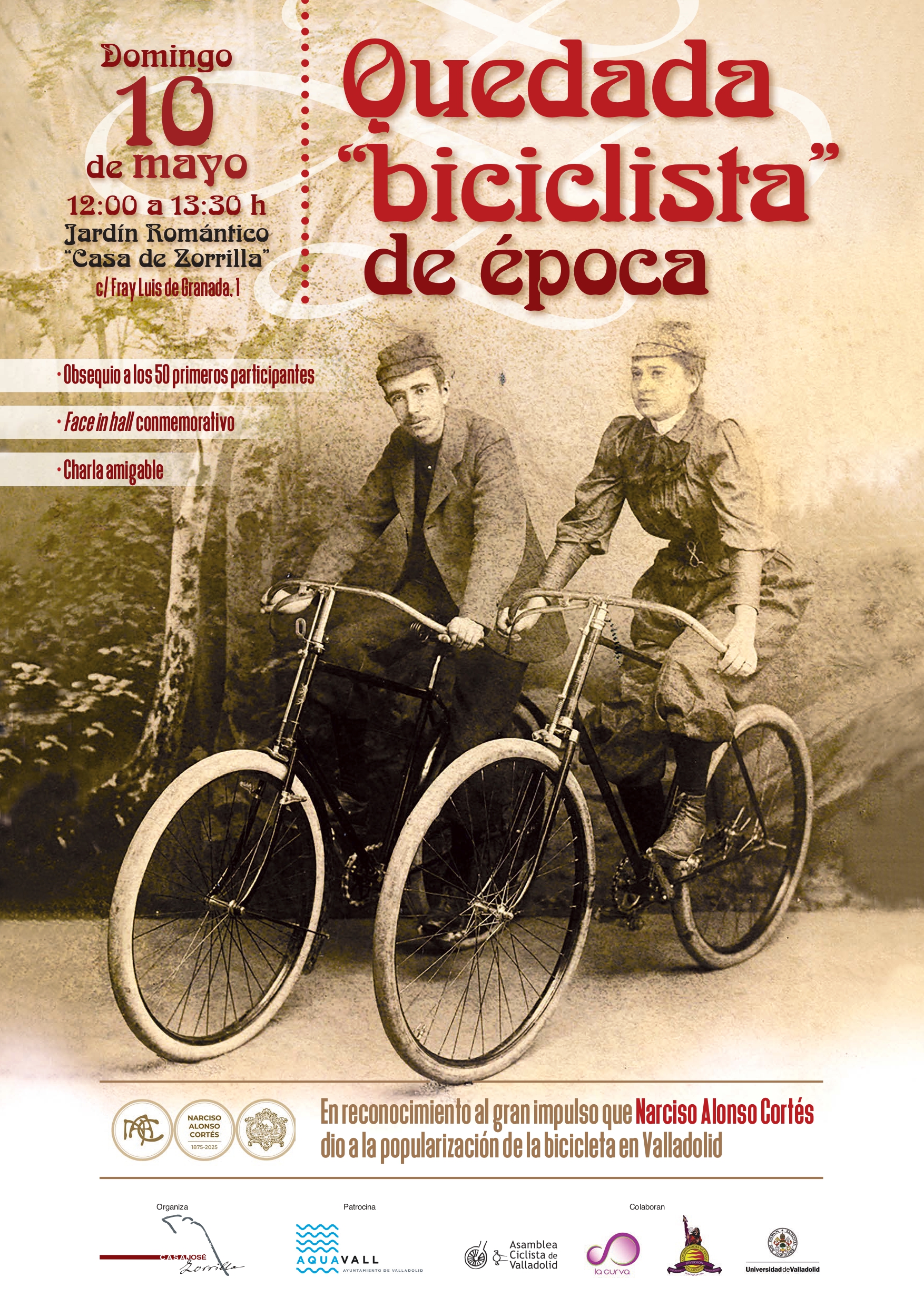 “Quedada biciclista de época”. En reconocimiento al gran impulso que don Narciso Alonso Cortés dio a la popularización de la bicicleta en Valladolid.